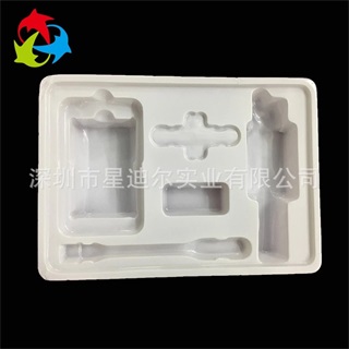1、依據客戶提供的實物貨圖紙以及相關要求經討論後得出白色PVC泡殼的設計方案;